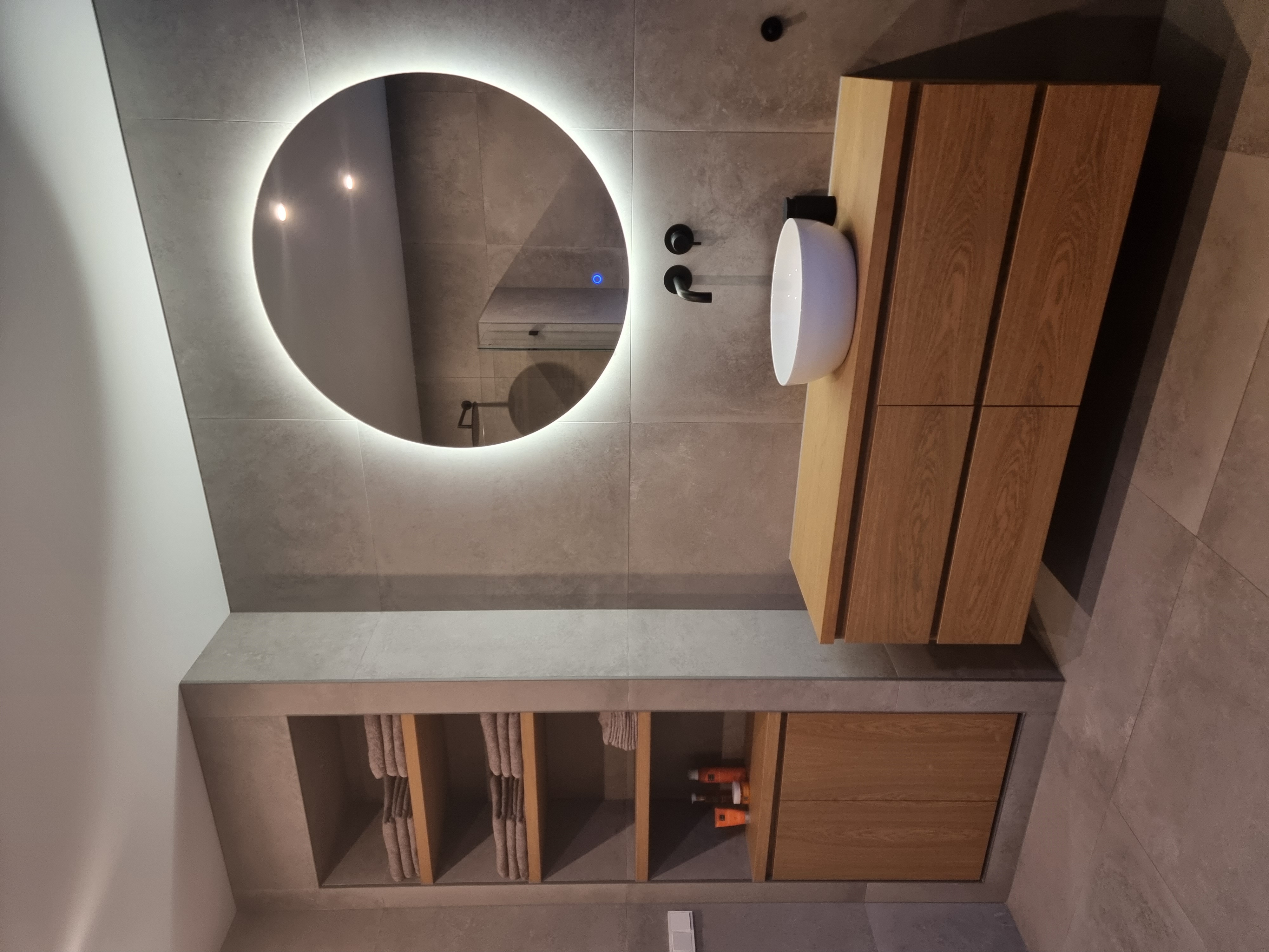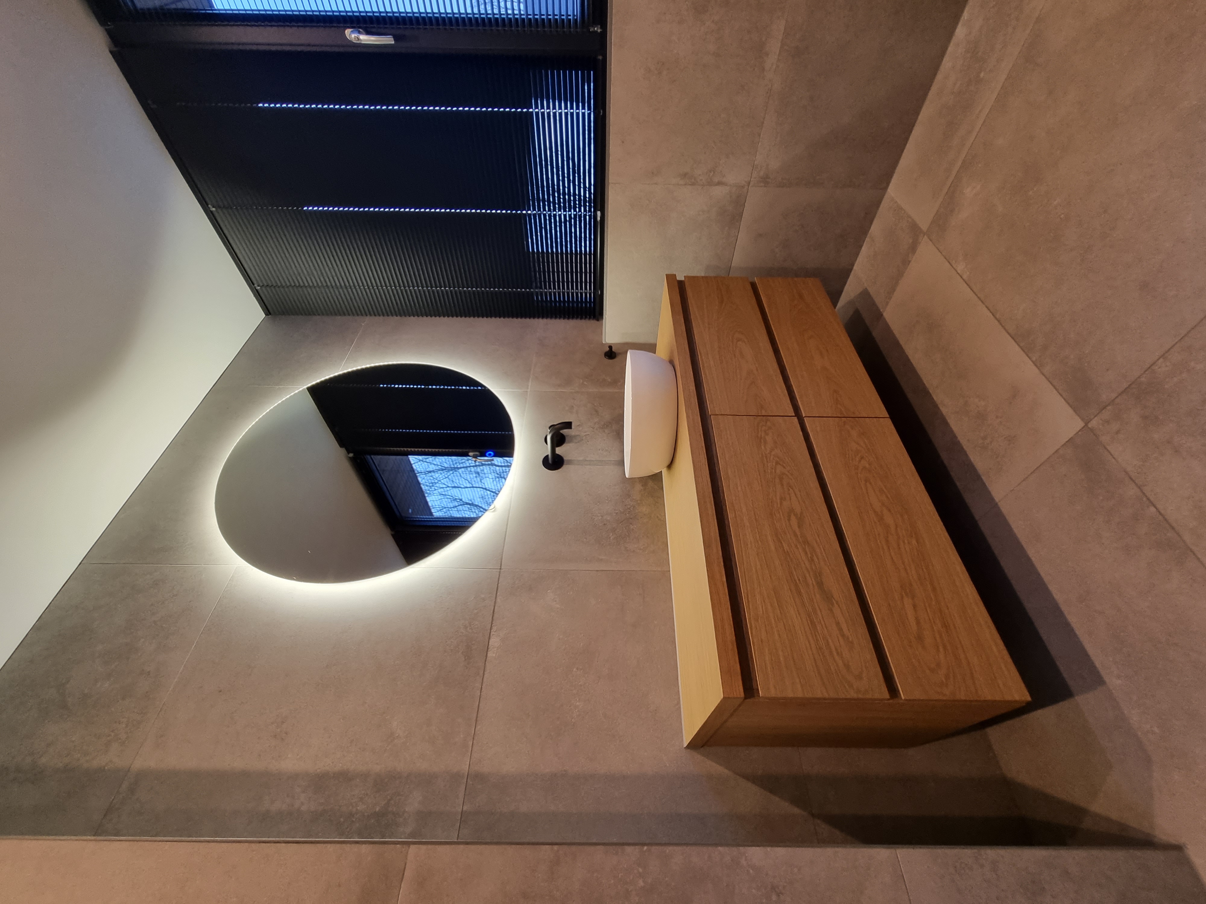 Een ruime badkamer suite die luxe en functionaliteit combineert. Het open ontwerp, de premium materialen en de doordachte verlichting zorgen voor een ruimte waar het heerlijk vertoeven is.