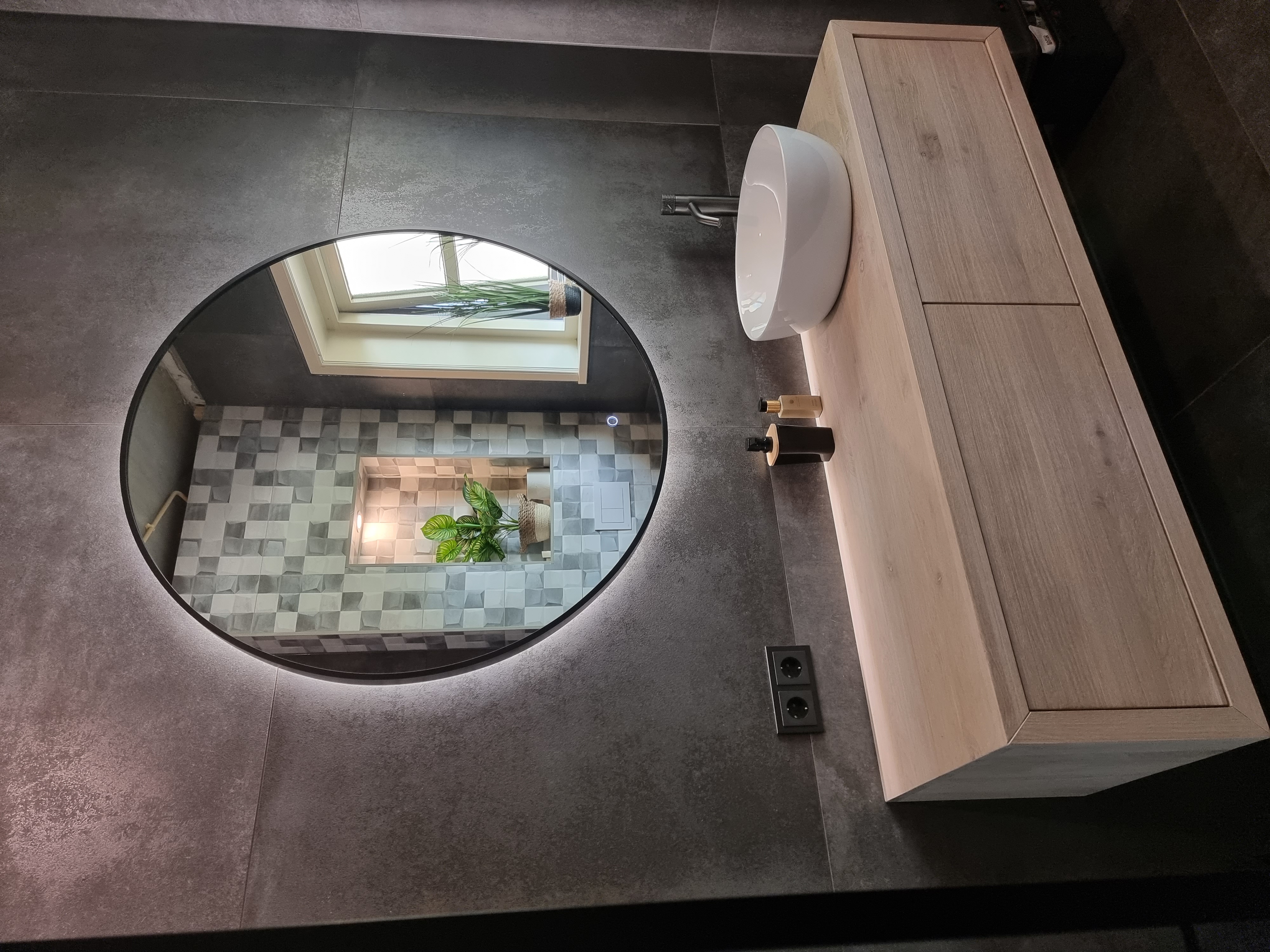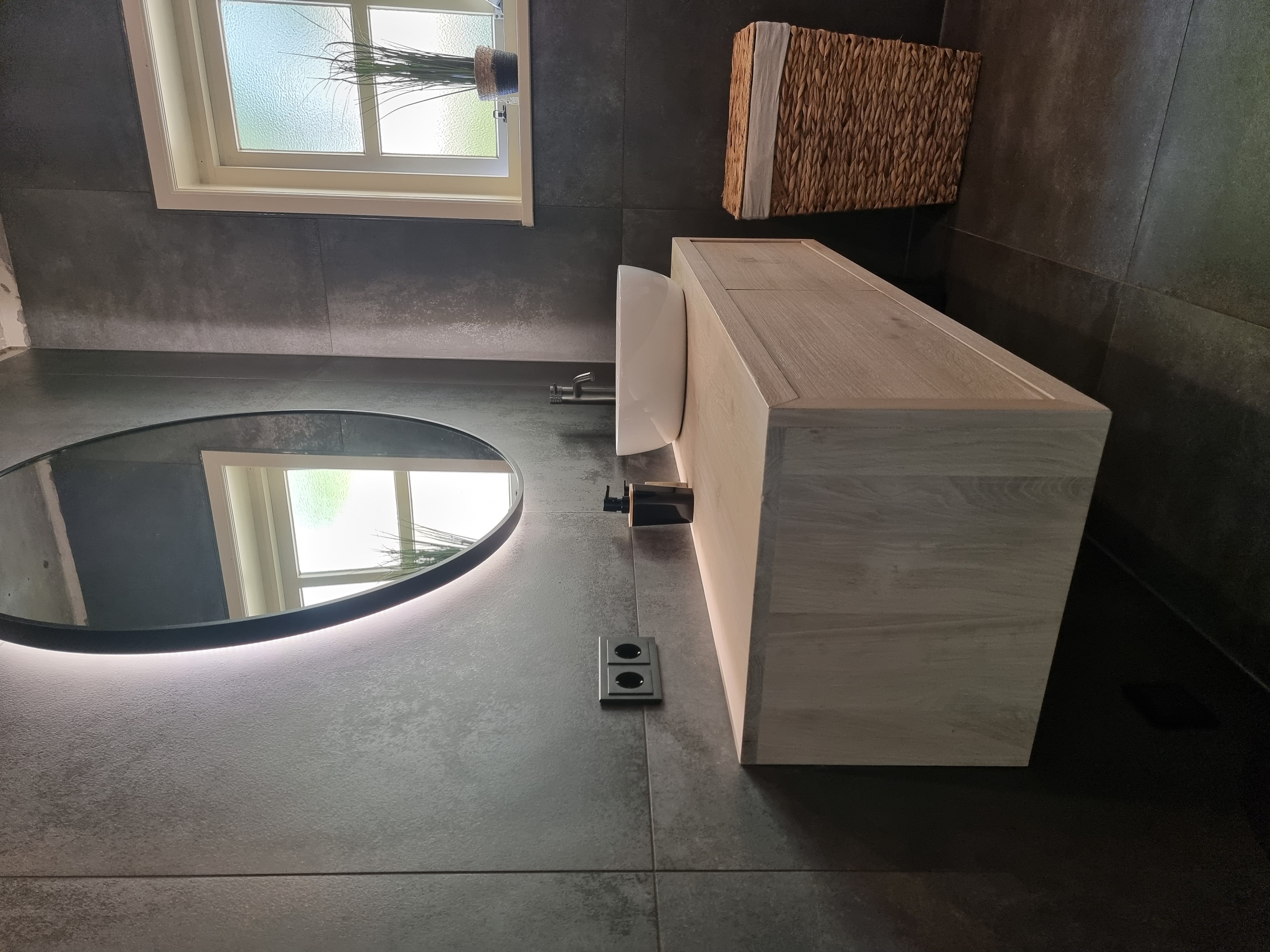 Minimalisme op zijn best. Deze badkamer kenmerkt zich door strakke lijnen, een beperkt kleurenpalet en hoogwaardige materialen. Het resultaat is een tijdloze ruimte die rust en elegantie uitstraalt.