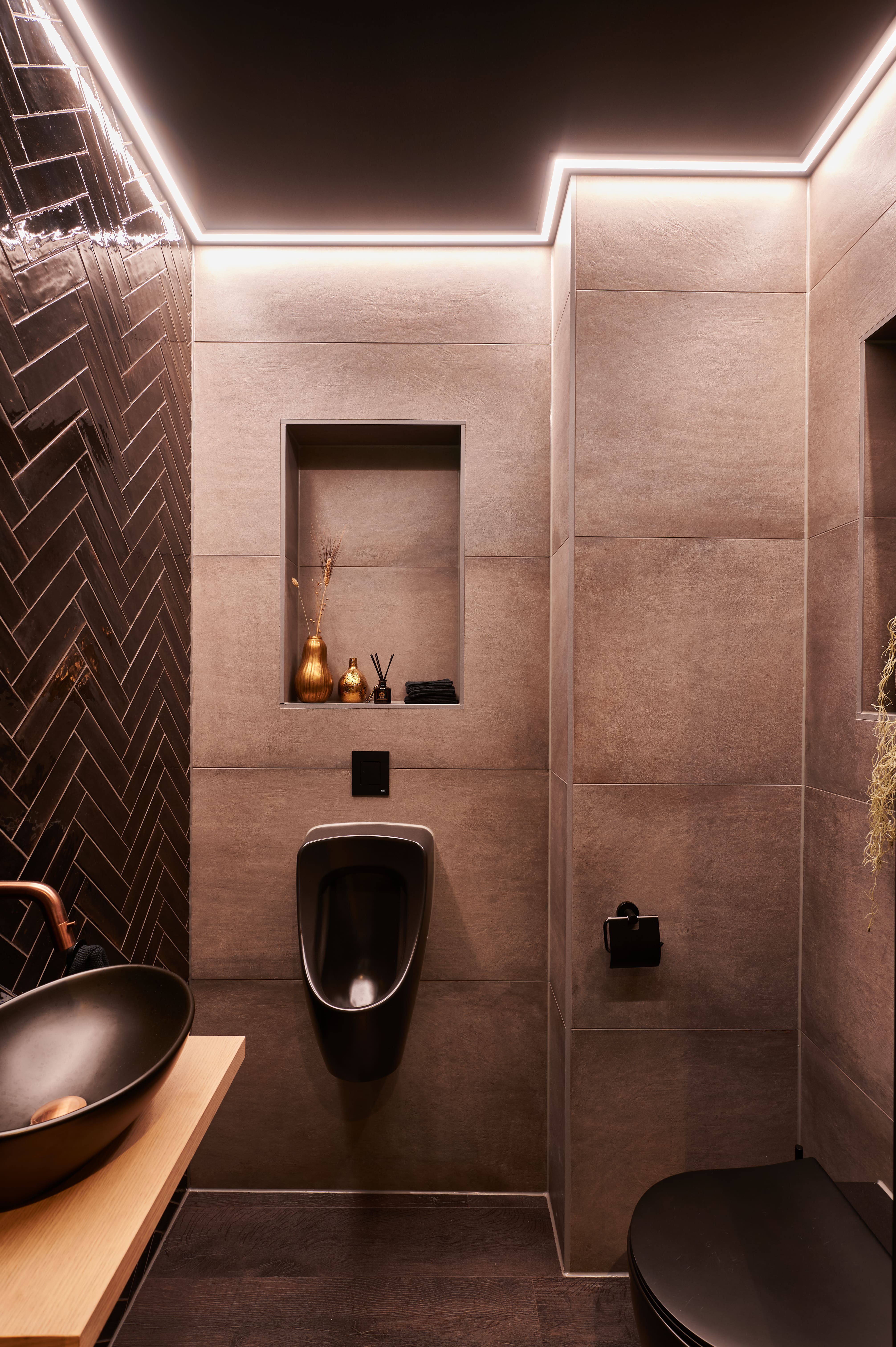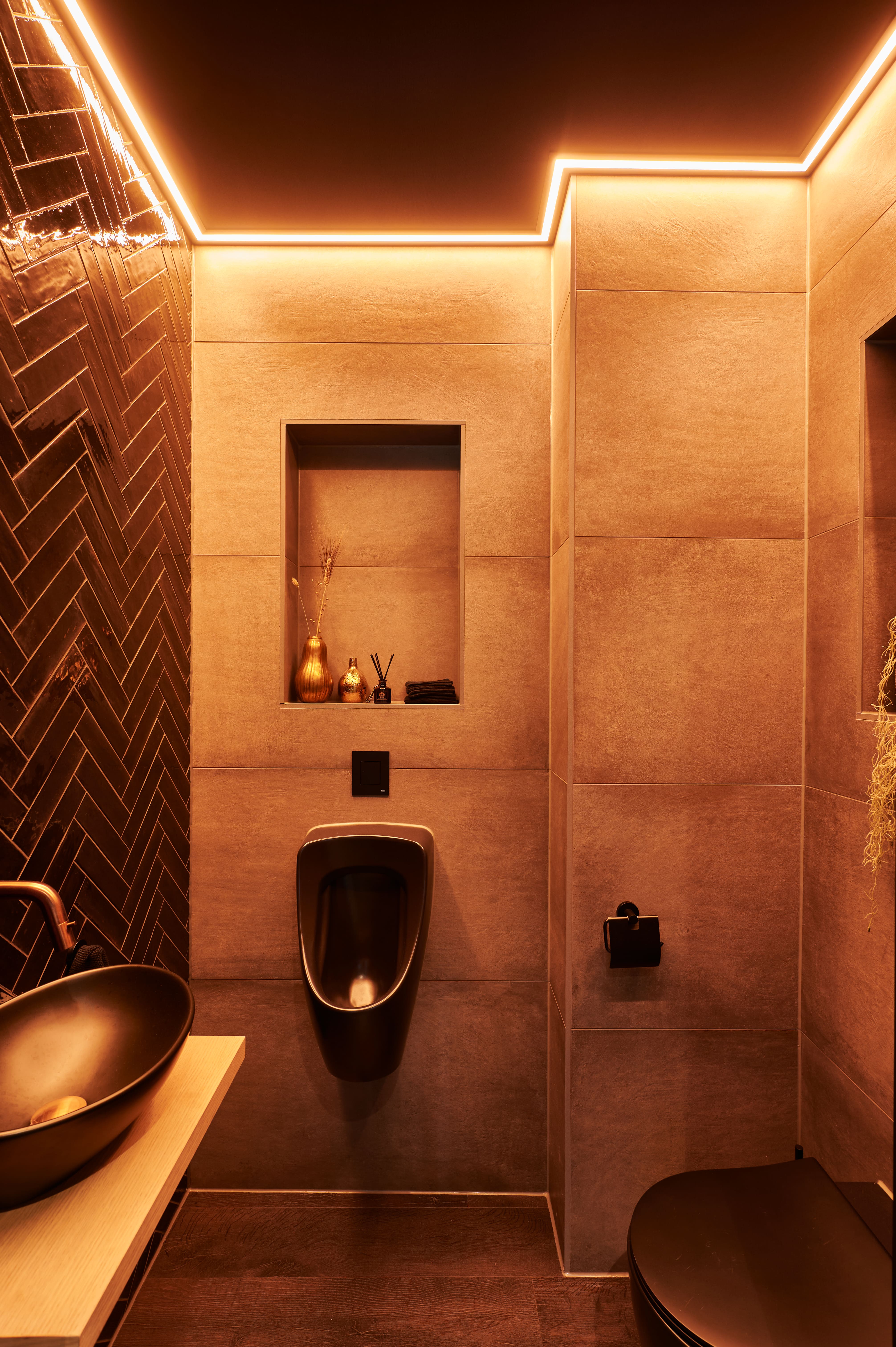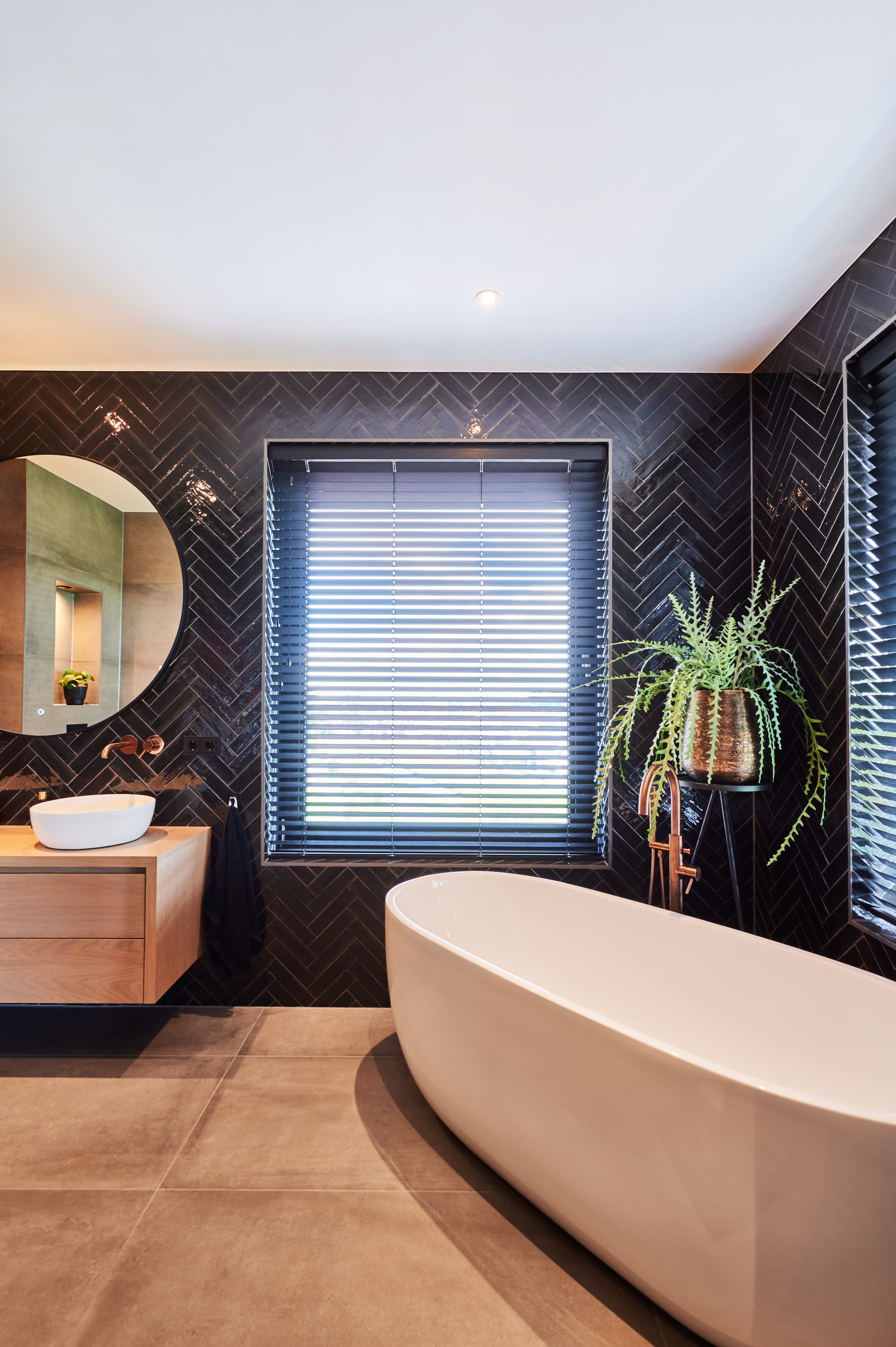 Een wellness-ervaring in eigen huis. Deze badkamer is ontworpen met het comfort van een spa in gedachten. De warme materialen, sfeervolle verlichting en ruime opzet maken elke badbeurt tot een moment van ontspanning.